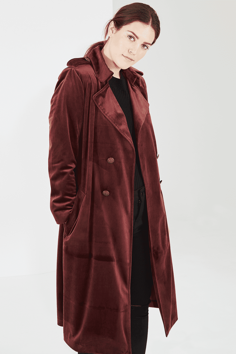 Elvi Plus Size Velvet Trench Coat